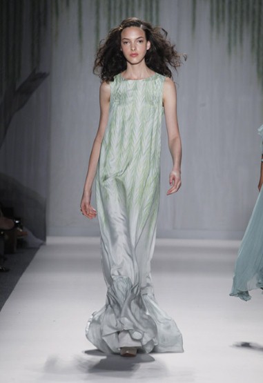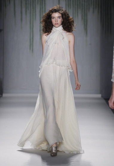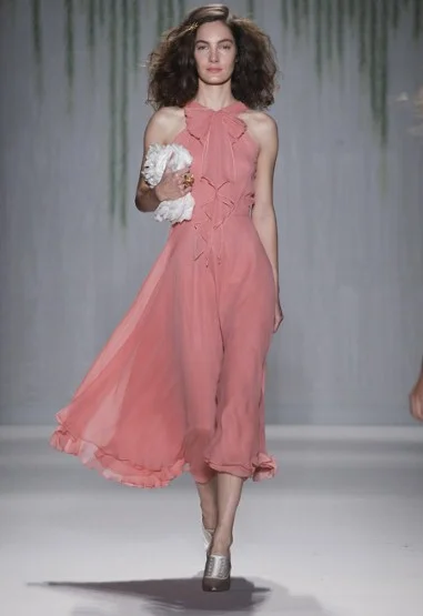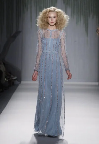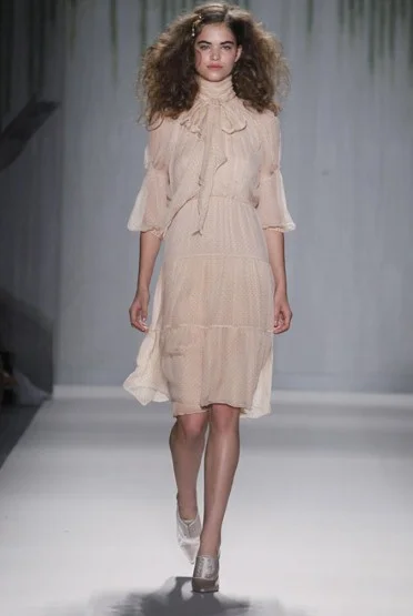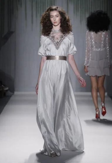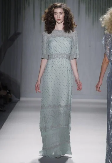 The Telegraph fashion writer Luke Leitch wrote: “Spots, beads and floral studs cascaded in abundance in a collection that was inspired by Peter Weir's 1975 film of Picnic at Hanging Rock, with novelist Joan Lindsay's unsettling yarn of schoolgirls lost in the Australian bush. In honour of the period, there were Edwardian touches including unlaced satin bootie-heels and delicately pleated, high-necked, floor length gowns in Farrow & Ball shades.